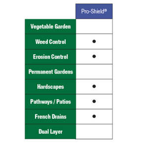 If you need help controlling erosion in your garden, Pro-Shield is a heavy-duty fabric designed for erosion control. Pro-Shield’s premium strength is excellent for rock gardens, pavers, pathways, and high-impact areas needing premium durability and strength.