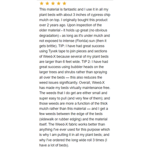 If you are looking for the best weed mat for suppressing weed growth, Weed-X is the number-one landscaping fabric for stopping weeds. Weed-X uses a unique dual-layer fabric that lets water through but stops weeds before they even have a chance to start and works well in permanent landscape beds that don't get much foot traffic.